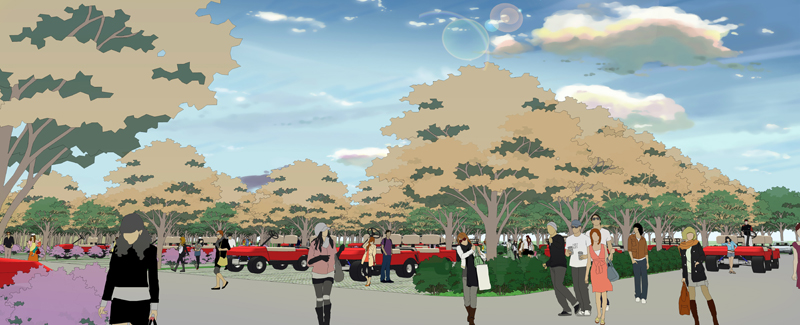 建筑設計主要采用簡歐風格,遵循“尊重自然、綠色生態(tài)、建筑風貌、景觀營造、可持續(xù)發(fā)展、低碳環(huán)保”的原則,布置在景區(qū)主干道右側(cè)和左側(cè)部分地塊,主要滿足大巴、中巴、小車、電瓶車以及回遷居民住宅。規(guī)劃區(qū)停車場設有四個車行主要出入口,其中兩個主要滿足停車場內(nèi)部車輛進出,一個滿足電瓶車出入停車場,一個滿足回遷建筑出入。建筑前廣場主要考慮人流集散,后庭院主要突出景觀營造,通過對商業(yè)零售、回遷居住、景區(qū)服務、汽車維修等配套商業(yè)設施的建設滿足游客游覽需求。