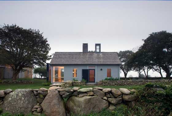 這個家庭農場坐落在羅德島南海岸,橫跨整個半島的山脊線同時面對著大西洋。它安置于薩康尼特河景觀當中并被水域所劃分開,這里有著森林,池塘以及草原。整個農場被安靜地嵌入在了一個非常祥和的土地上,同時為瀕臨滅絕的濱鳥,沿海植物以及其它野生動植物保留了關鍵性的棲息處。整個項目規劃采用了已建有的街道以及墻面來作為框架結構,三棟建筑物同時融合在這片沿海領域,從而創造出了一種清晰的景觀建筑并且發揚了這個半島的醉人之美。